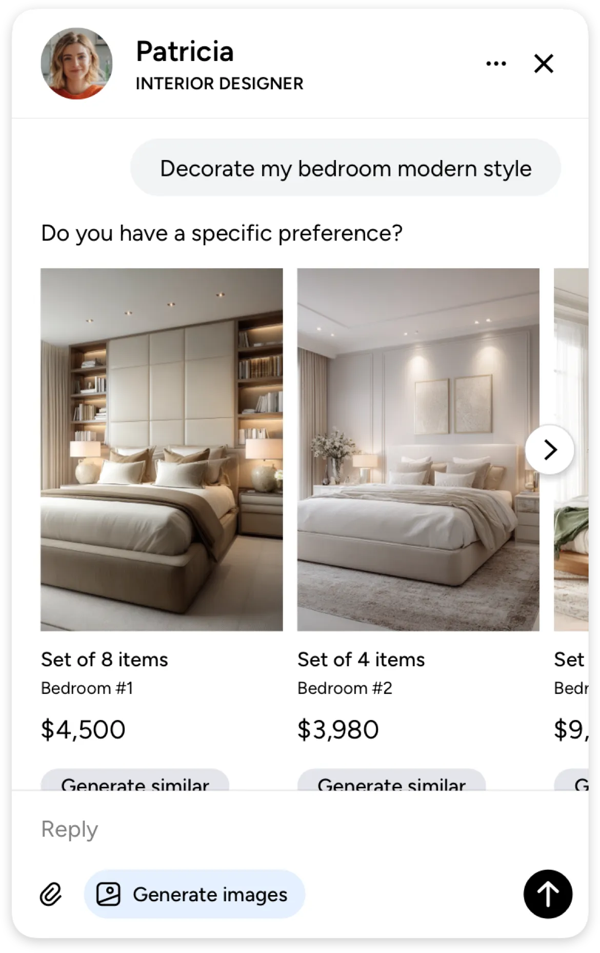 Deliver next-gen customer support and personalization via chat. Our agents understand user context, make style recommendations, and can even generate virtual try-ons.